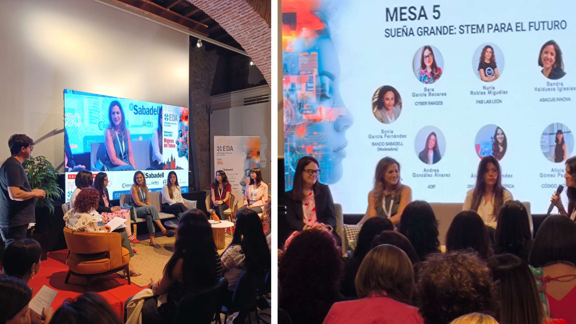 El Congreso EDA (Empresarias y Directivas del Atlántico) se celebró en esta ocasión en León de la mano de Asele (Asociación de Mujeres Empresarias y Directivas de León). Buscaban respuestas a uno de los retos del siglo XXI: la baja representación de mujeres en los sectores científicos-tecnológicos. Contaron con Nuria para una de las mesas redondas titulada ‘Sueña grande: STEM para el futuro’. Entre el público estaban algunas de nuestras alumnas y también Laura González Llamazares, que había participado por la mañana en otra mesa.